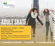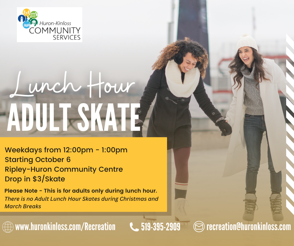 Looking for something to keep you active during your lunch hour? Pop by the Ripley-Huron Community Centre for Lunch Hour Adult Skate!