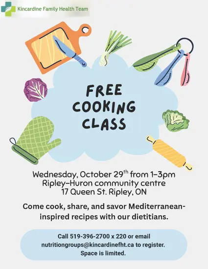 Come cook, share and savour Mediterranean-inspired recipes with Kincardine Family Health Team Dietitians!