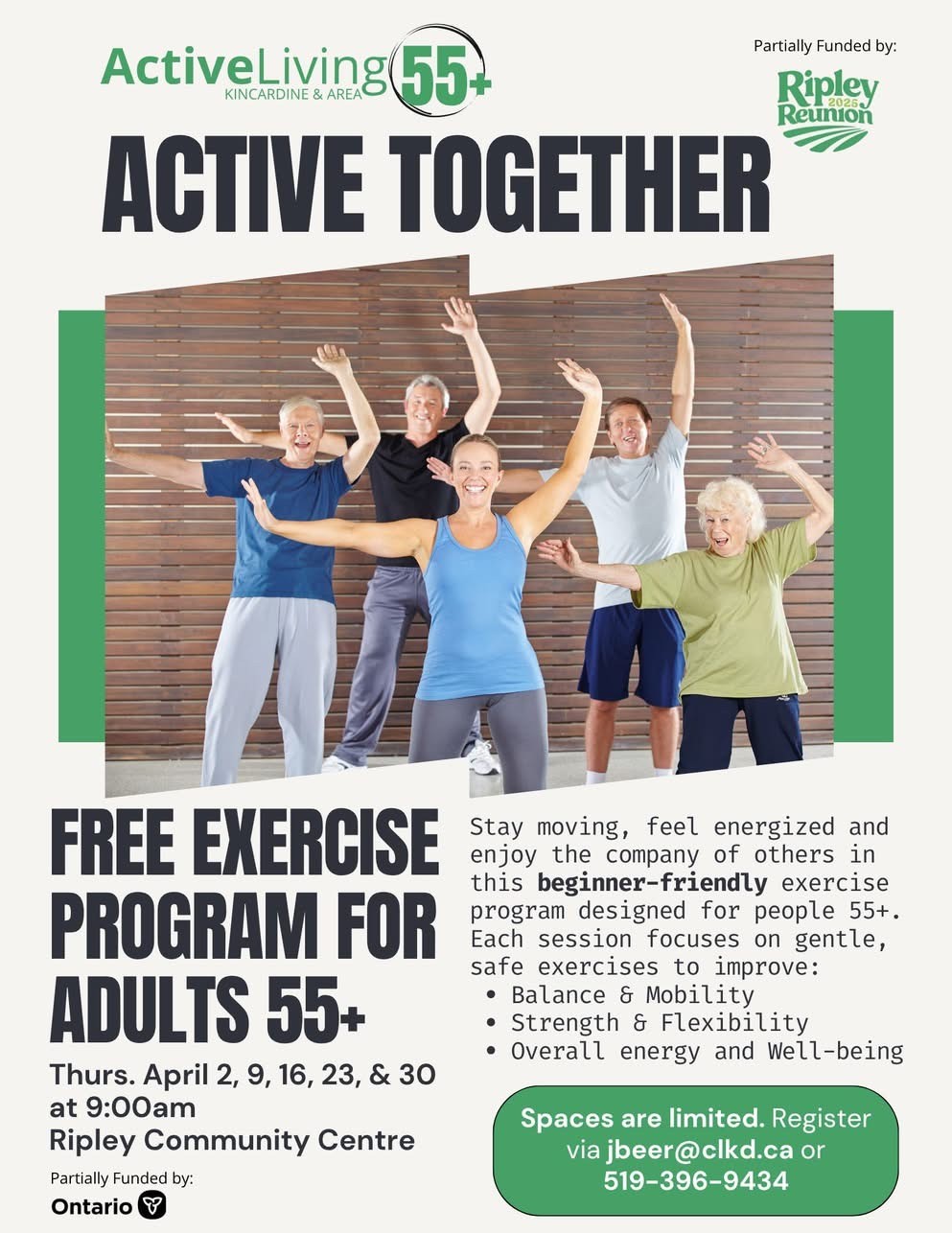 The Community Services Department in Ripley and Lucknow Recreation Department offer and promote a wide variety of fitness programs throughout the year for all ages.