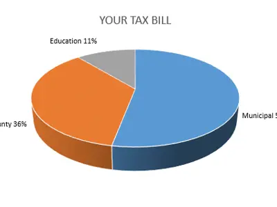 Combining the municipal, county and education taxes, for every 100,000 in assessed value a home paid a total of $1,377.93 in property tax for 2024. For 2025, that amount would increase by $58.80 to $1,436.73; an overall increase of 4.3%.