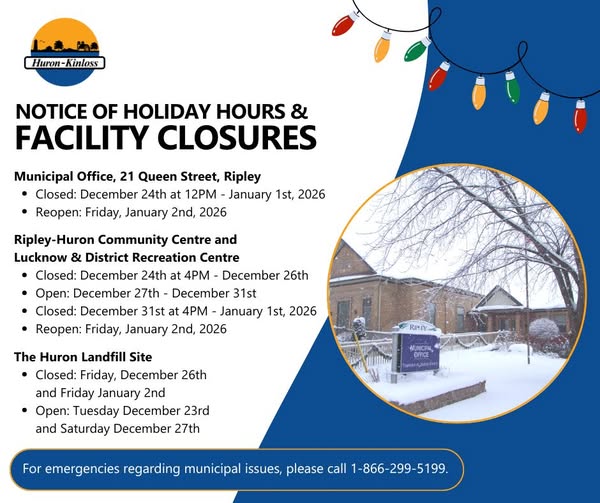Huron-Kinloss Holiday Hours and Facility Closures 2025/2026